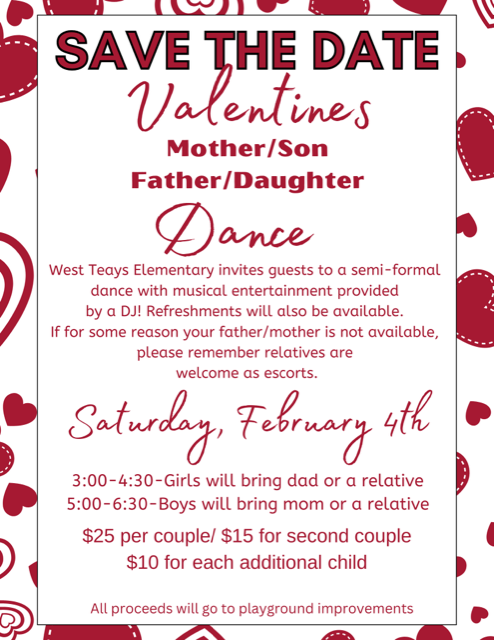 Save the date for the this year's Valentine's Day dance Saturday, February 4th.